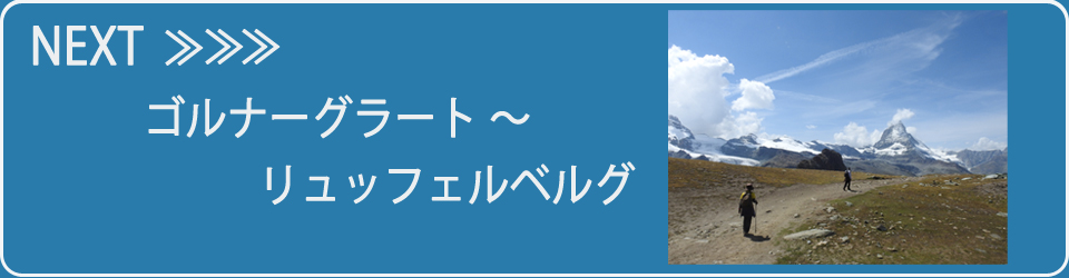 中央がローテンボーデン駅の最後の上り道。ゴルナーグラートからのジグザグの急斜面下りは風にあおられ写真を撮る余裕がなかった。冷や汗をかきつつも絶景ルートの楽しいトレッキングだった。