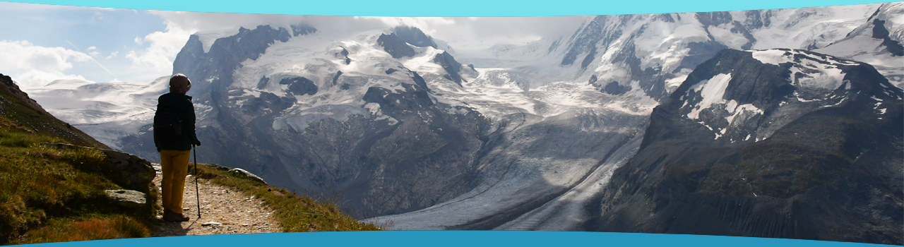 急斜面からのぞむグレンツ氷河とブライトホルン
