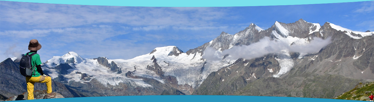 左から Alphubel(4,206m), Taschhorn(4,490m), Dom(4,545m), Lenzspitze(4,249m)