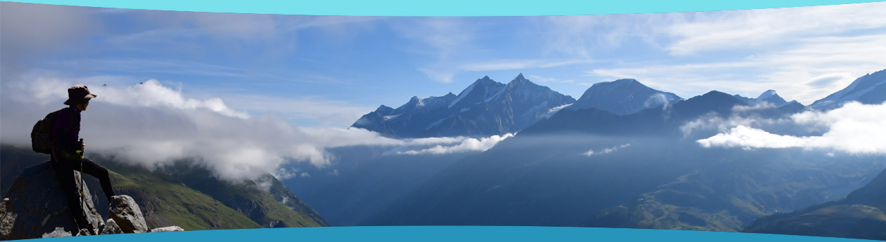 絶景ルートなのにハイカーが少なくて静かな山歩きが出来る。ドムとリンプフィッシュホルンがずっと前方に